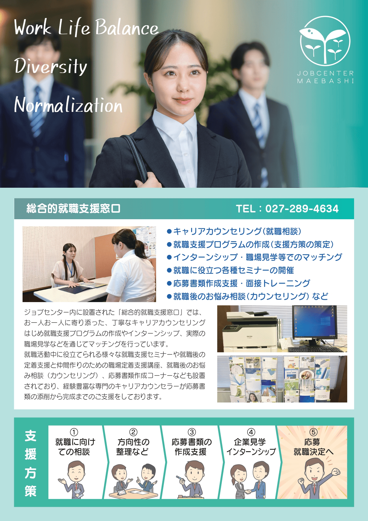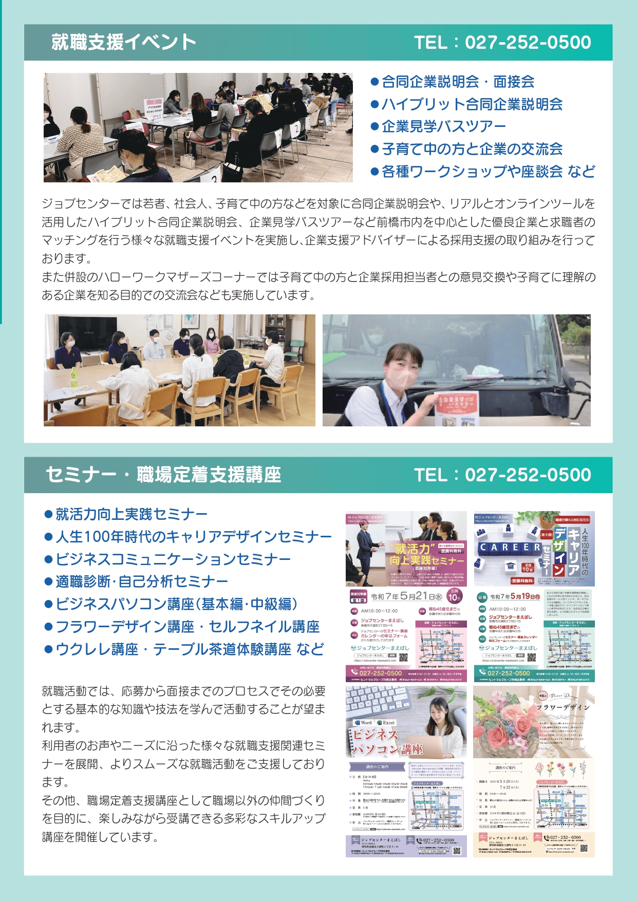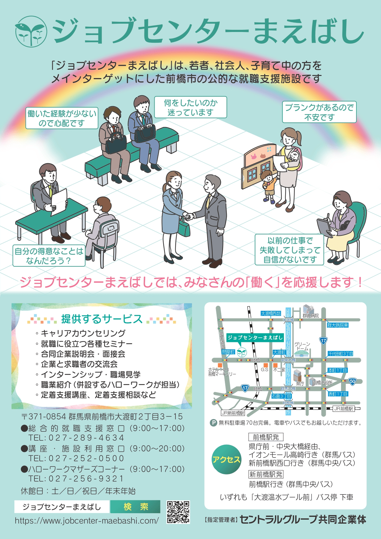 ジョブセンターまえばしでは、みなさんの「働く」を応援します!