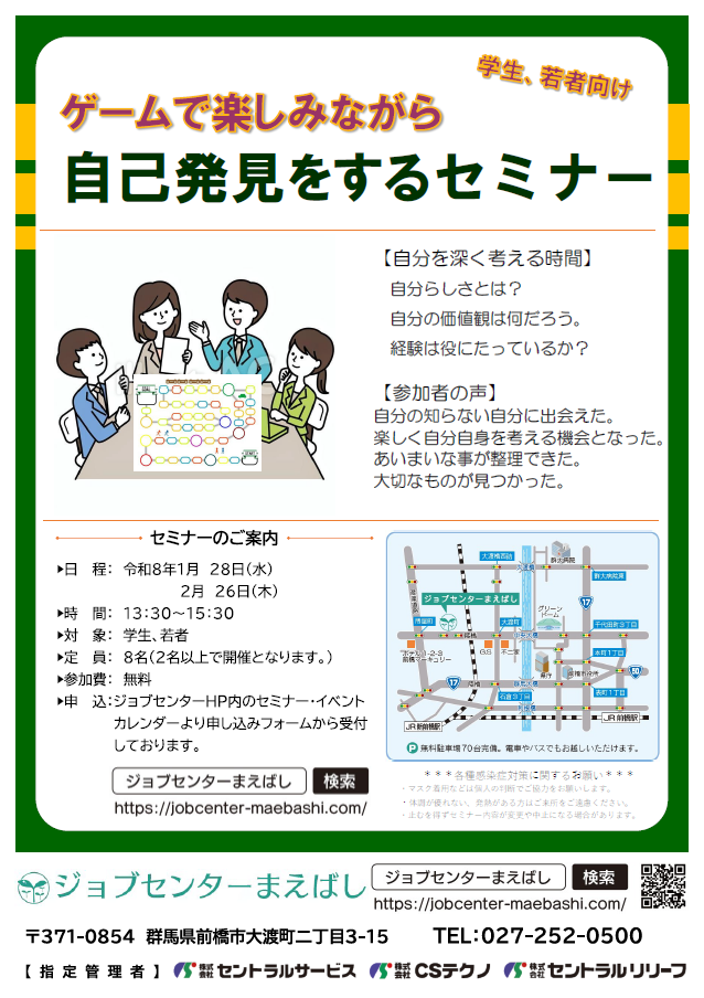 | 開催場所 | ジョブセンターまえばし3階会議室③ |